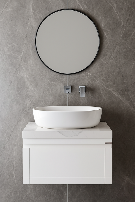 روشویی والرسا سفید با صفحه سرامیکی و کاسه چینی