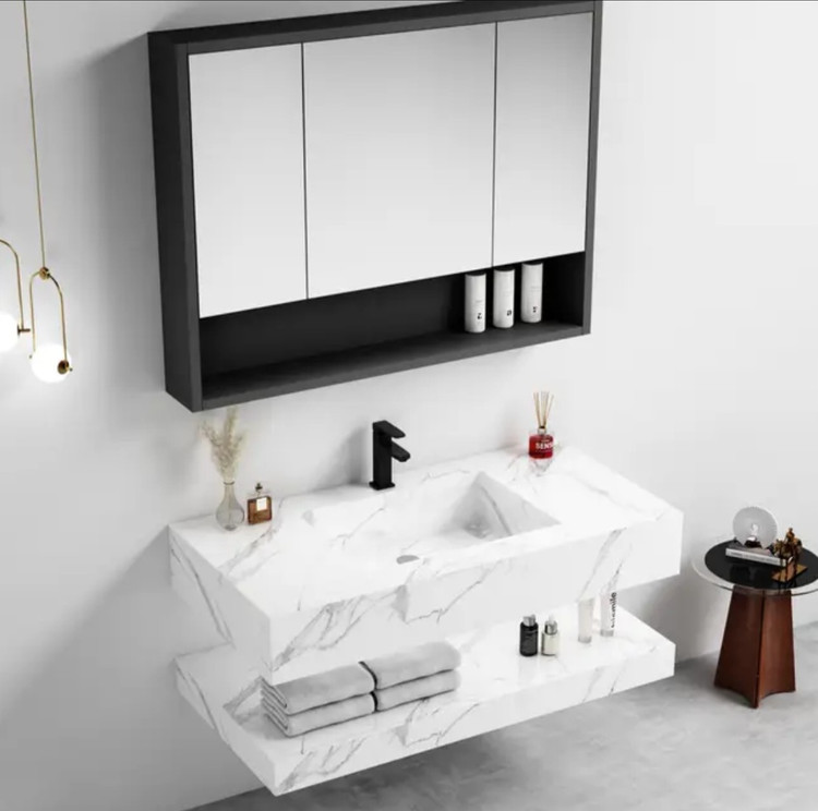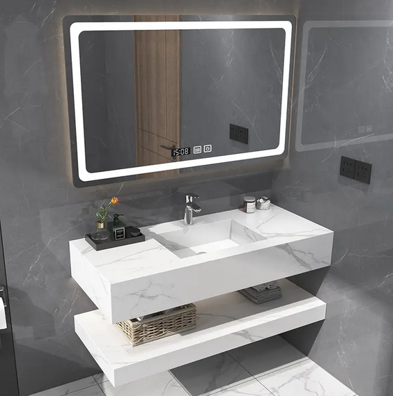 روشویی سرامیکی مدل اوستا بهمراه شلف. ( کلکته سفید)