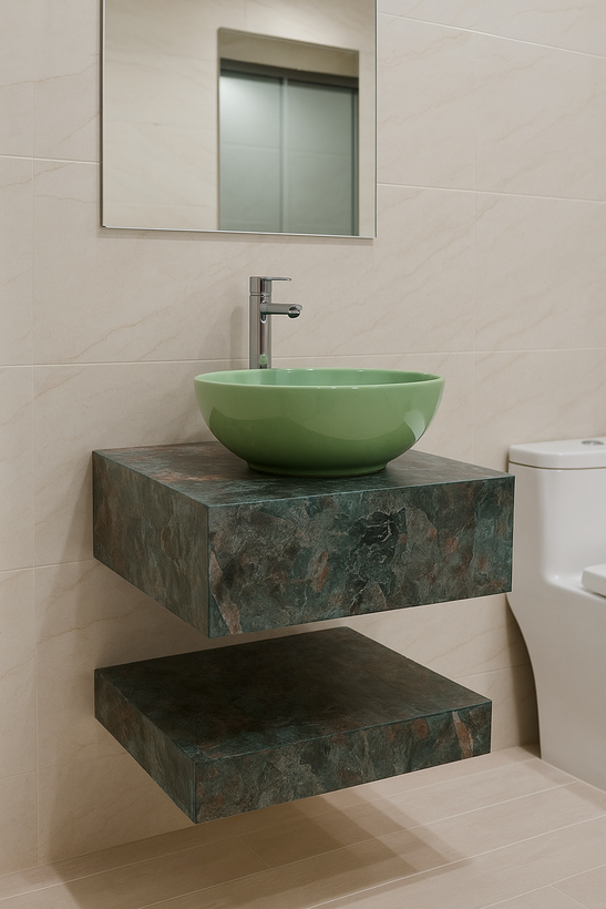 روشویی سرامیکی آراد سبز تیره با کاسه روکار بهمراه شلف زیر